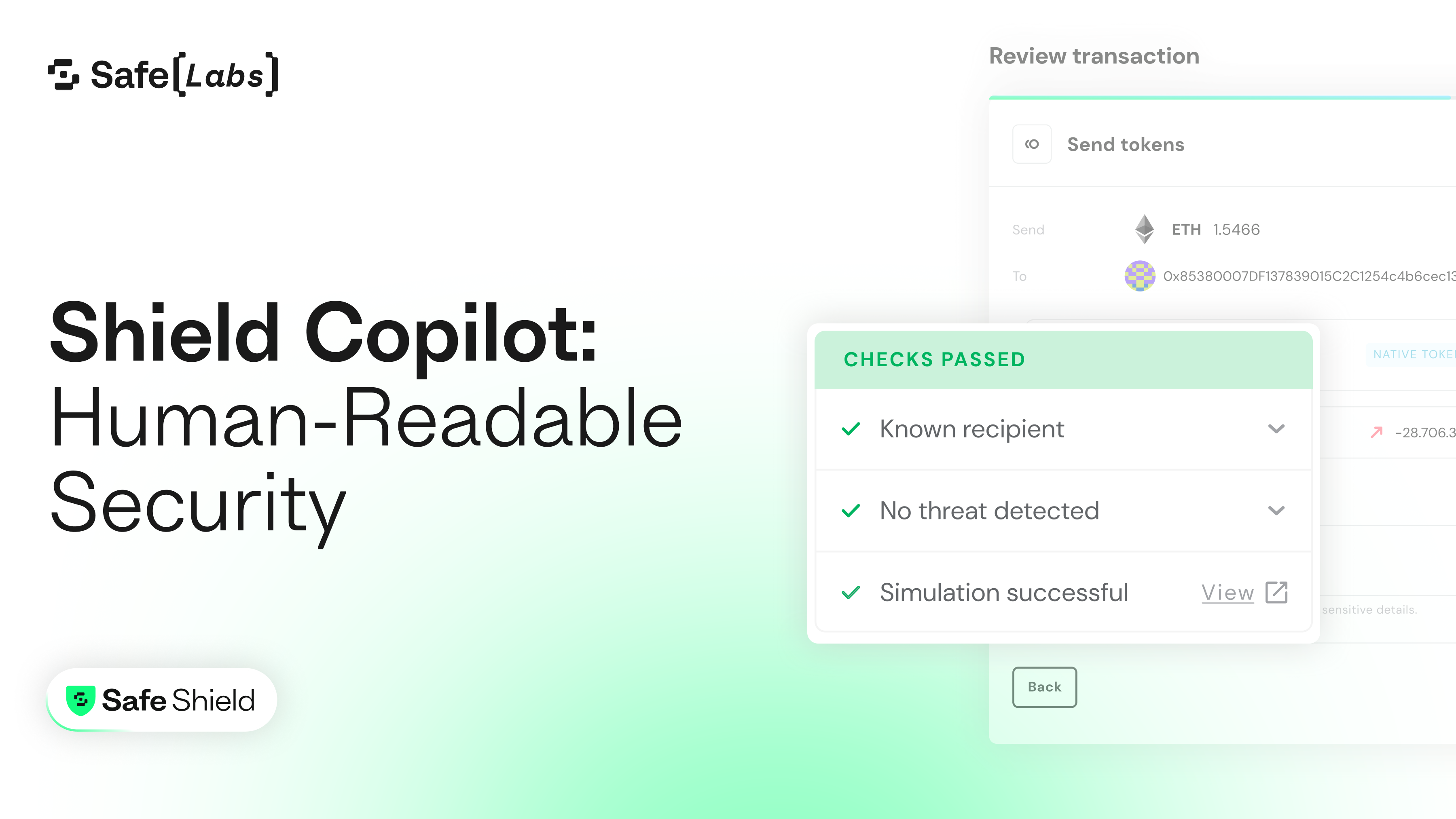 Shield CoPilot is the human interface of Safe Shield. It encapsulates the entire security program into a seamless product experience that sits right beside your transactions. Shield Copilot verifies, simulates, and enforces policies before you sign. It brings pre-execution analysis, policy controls, and clear signing together in a single, fast, native workflow that gives you confidence without adding friction.